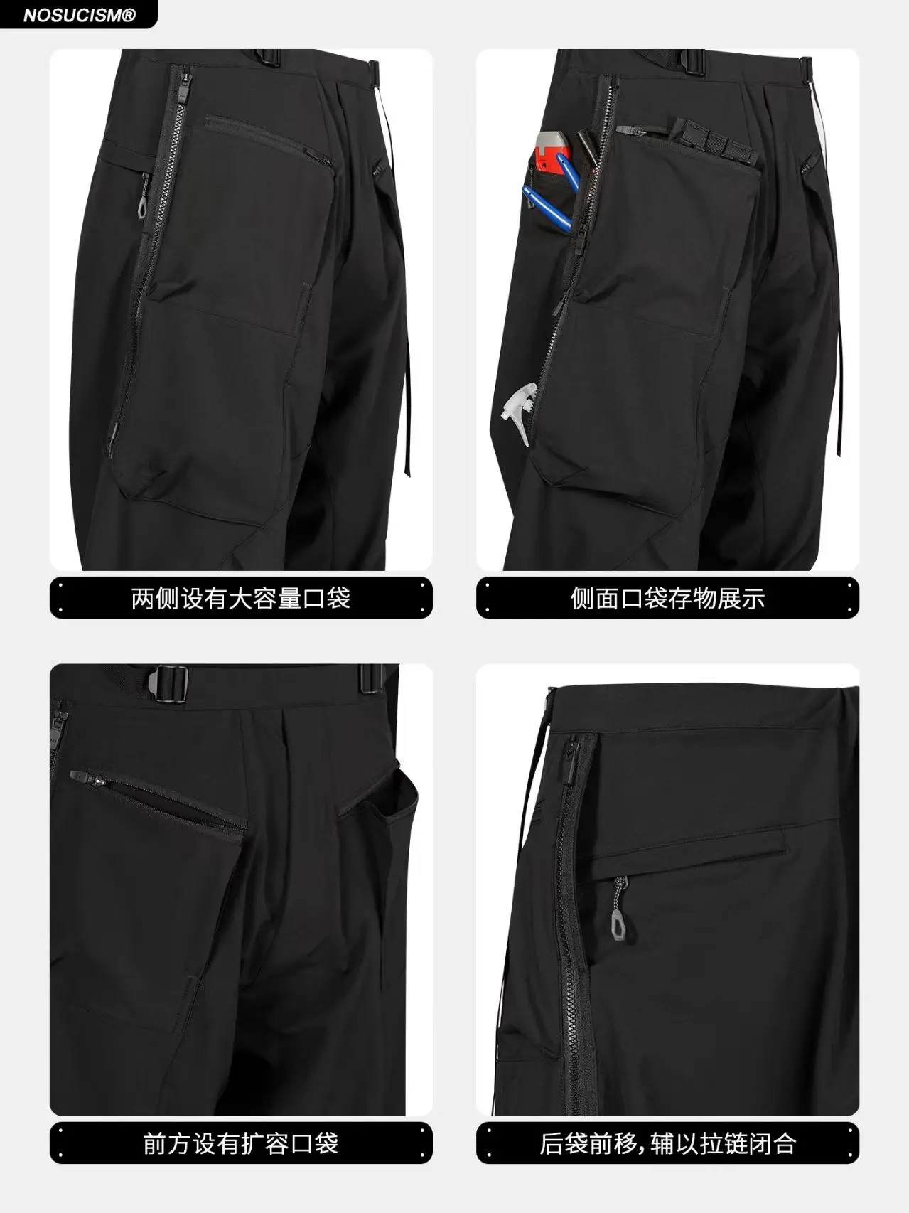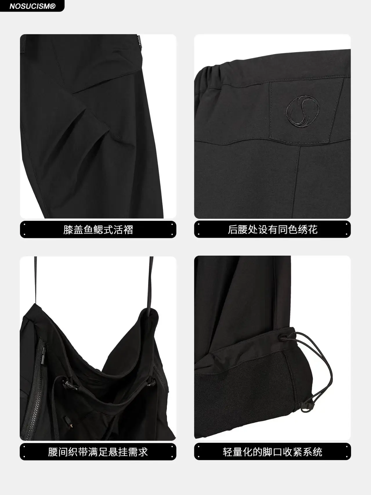 Nosucism 23aw Loose leaf pants integrated waist adjusment zipper closure pockets techwear aesthetic