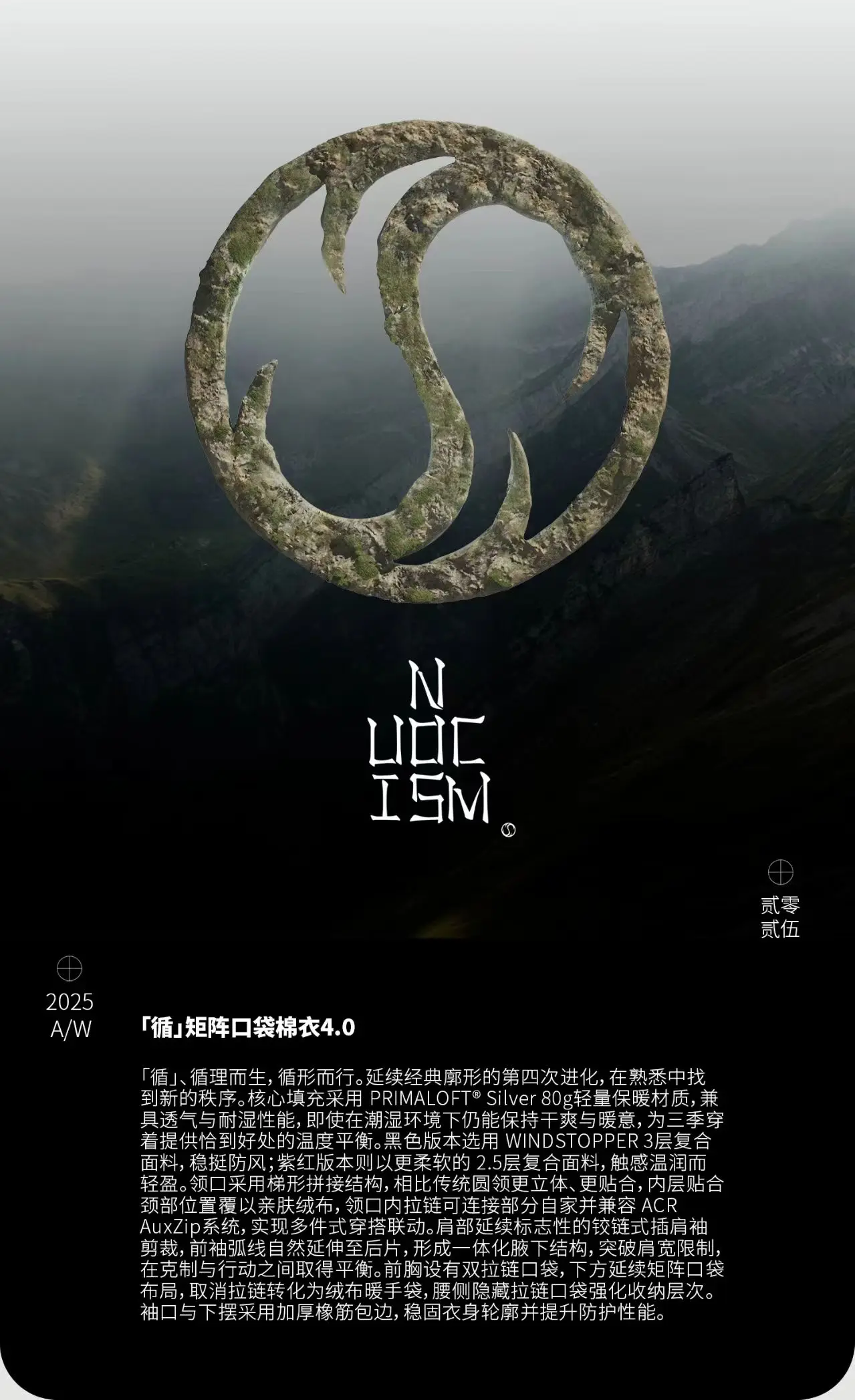 Nosucism 25aw “Xun” insulated inner jacket aux zip primaloft silver80g lightweight material carrying sling techwear –
