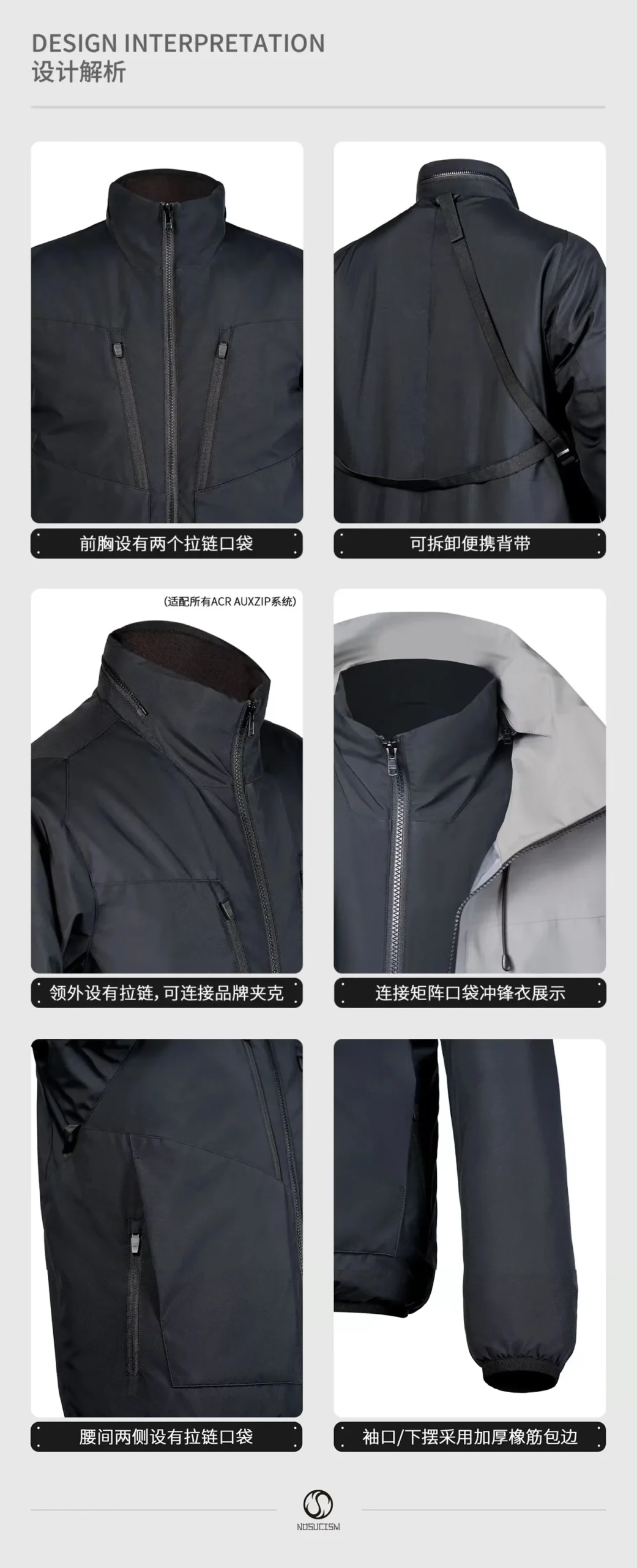 Nosucism 22AW Scout jacket three front zipper hidden pockets stitching colour carrying system techwear gorpcore