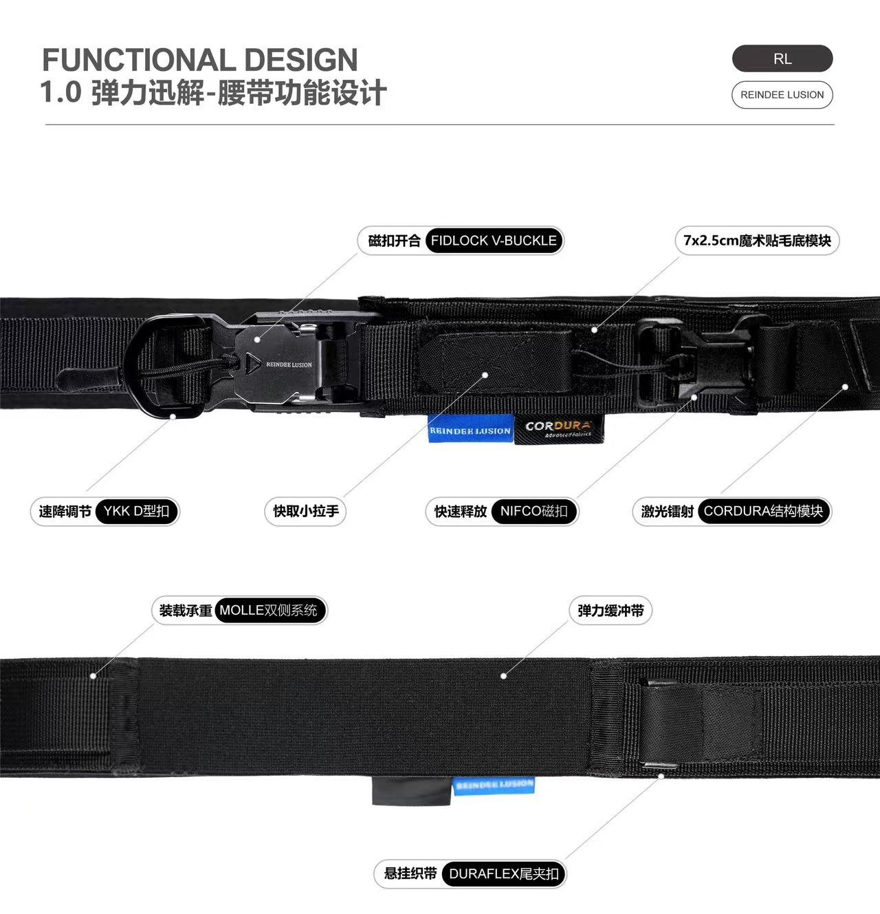 Reindee Lusion 26ss A006/A022 3-in-1 fidlock tactical functional belt 7molle cells patch pad techwear accessories –