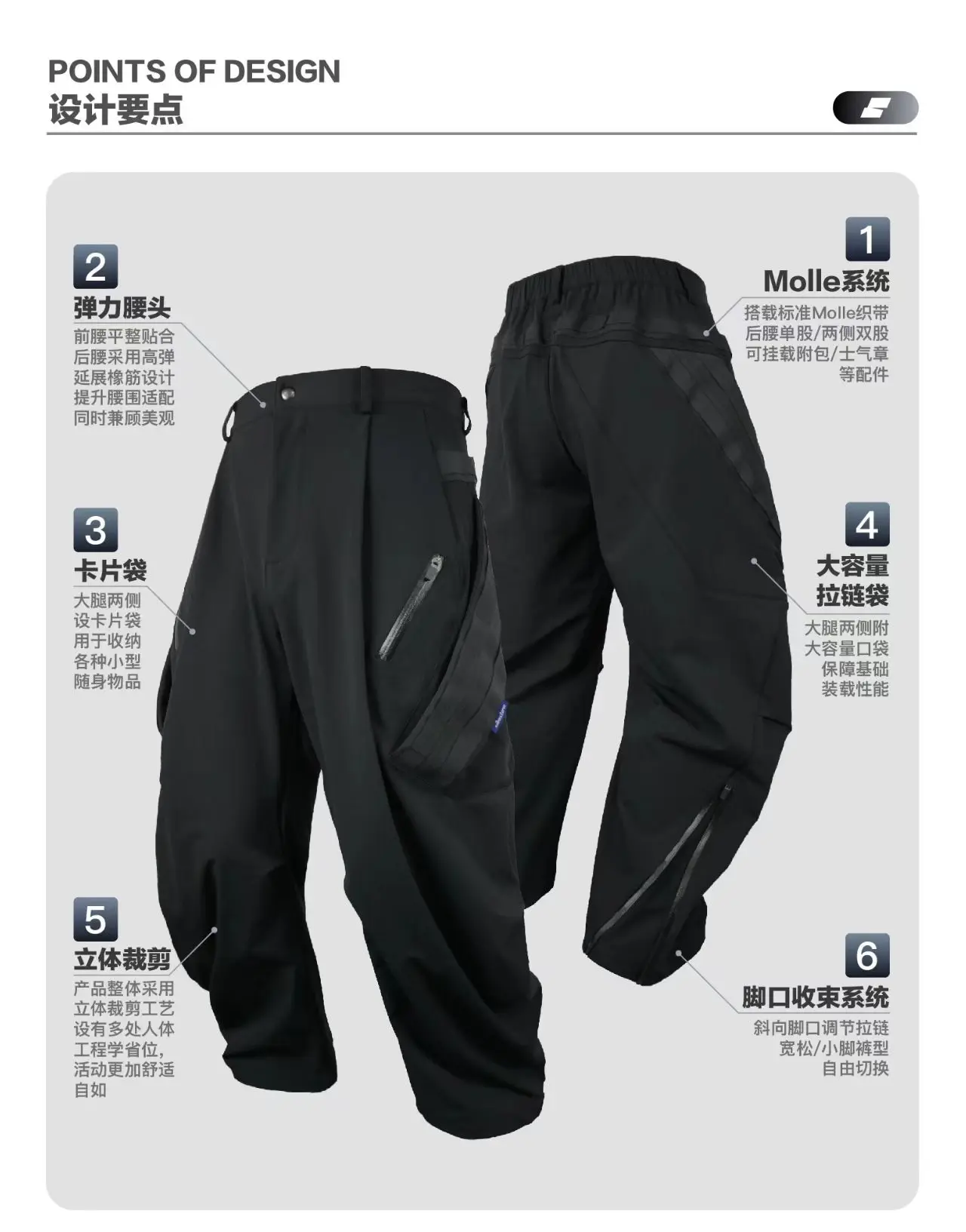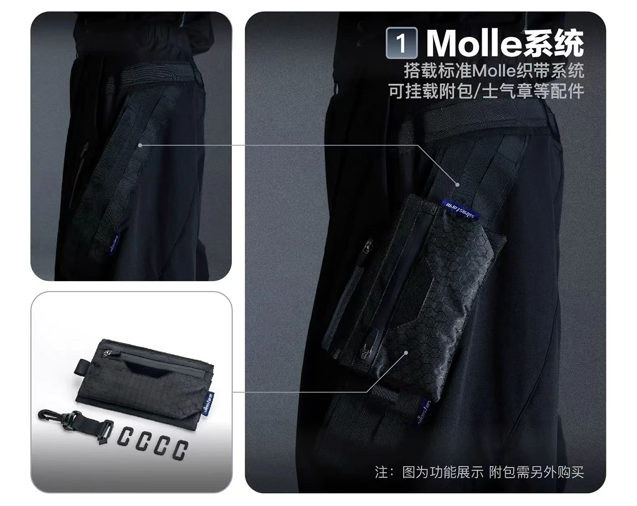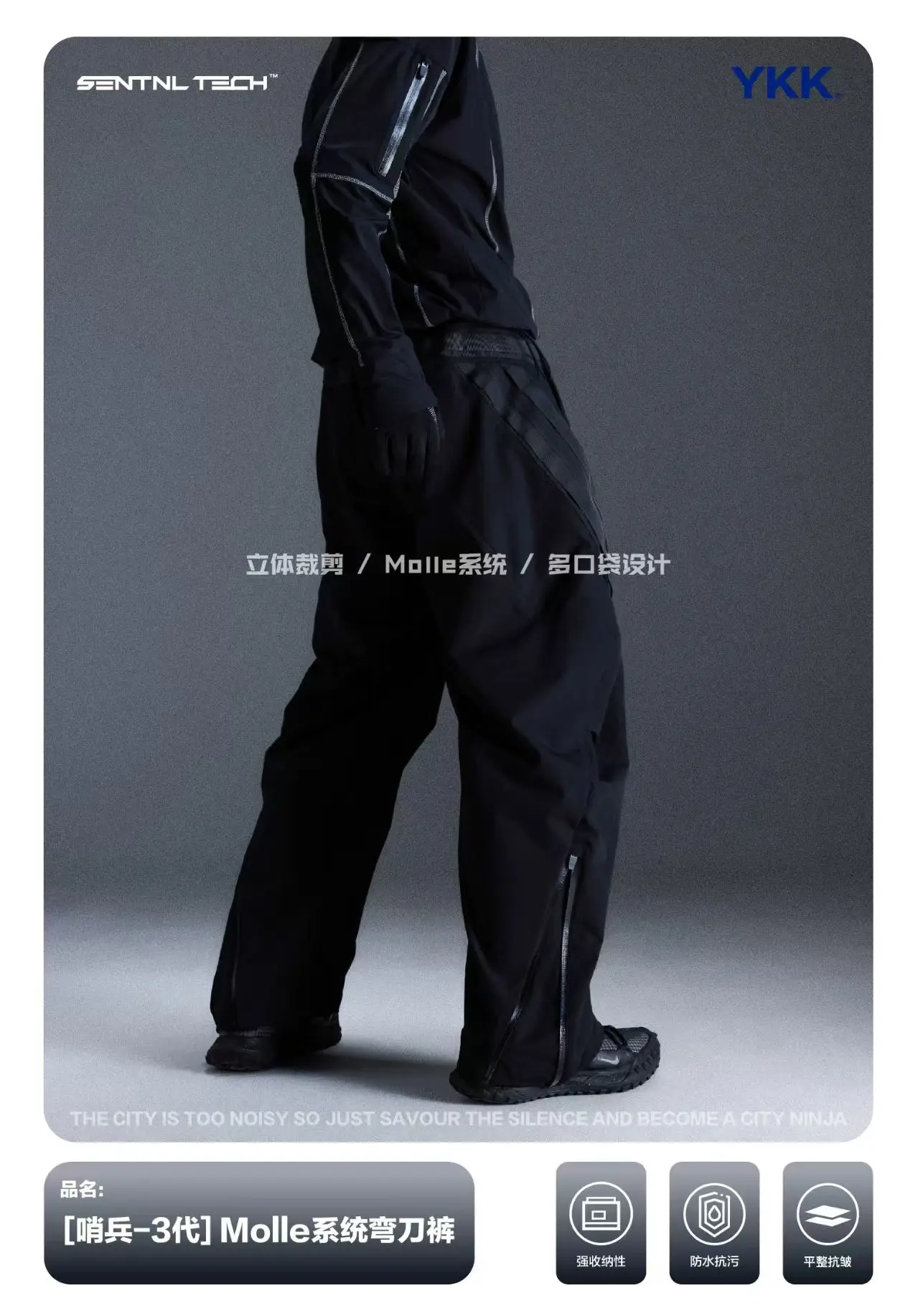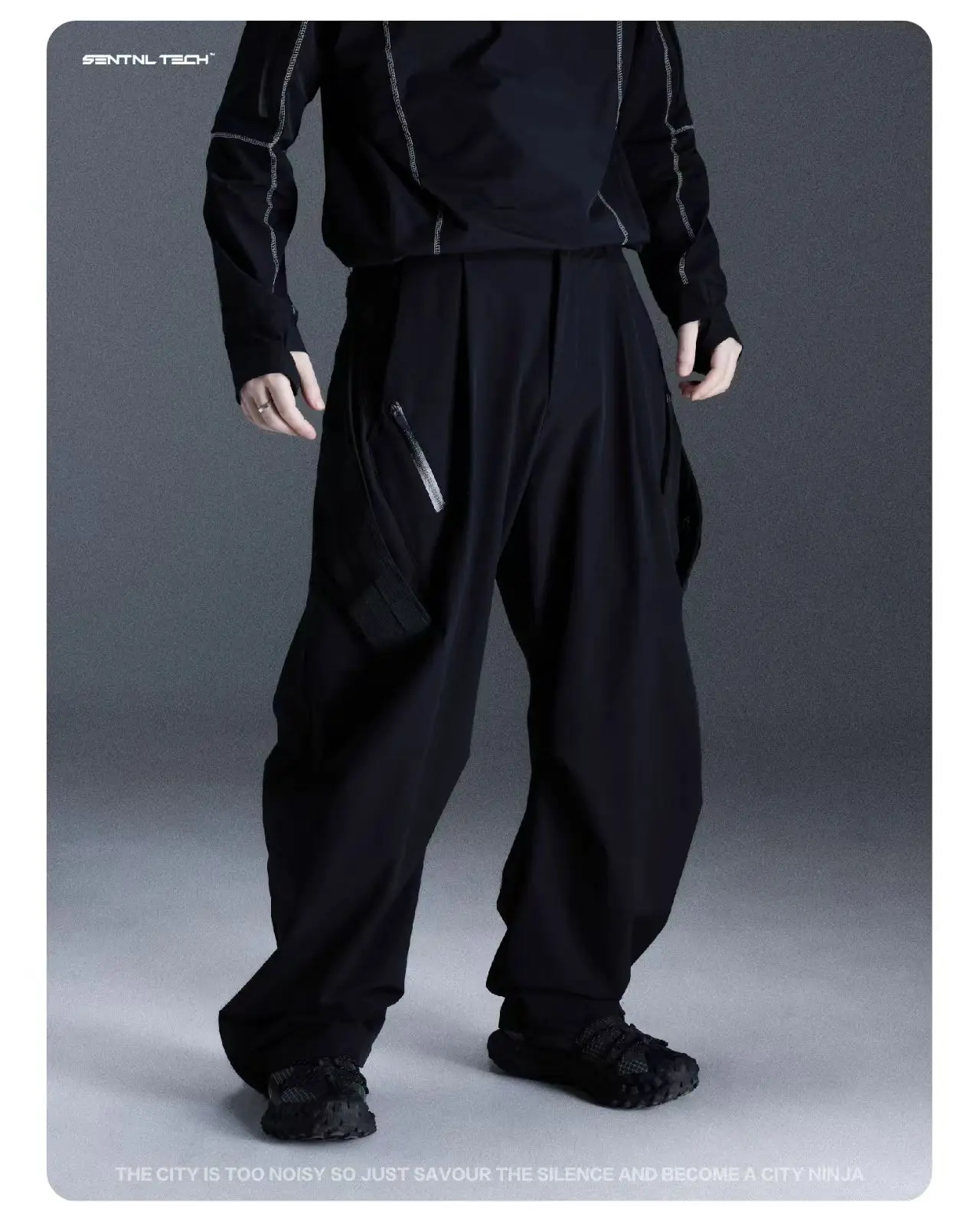 Sentnl 26ss Tactical loose fit cargo pants multipocket side molle pads techwear –